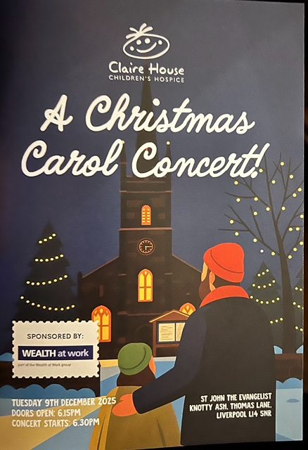 Claire House Children’s Hospice held their annual Christmas Carol Concert on Tuesday evening, 9th December at St. John The Evangelist Church, in Knotty Ash. The Duchy of Lancaster Benevolent Fund Merseyside awarded a grant of £4,800 to Claire House in January this year to provide experiences and trips for young people receiving palliative care in order to provide a sense of normality, excitement and joy.