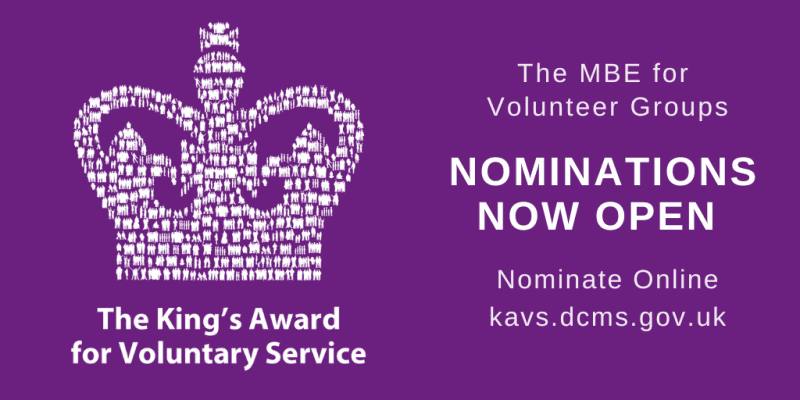 Nominations are now open for The King’s Award for Voluntary Service. If you know of a group of three or more individuals, which has been in operation for at least three years and is made up of a majority of volunteers then why not think about nominating them. It’s straight forward and the instructions are below! It is the MBE for Voluntary Groups – they highest award they can receive – don’t you think they deserve a bit of praise!