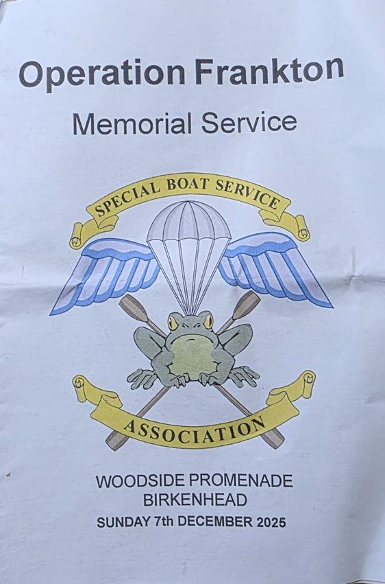 The annual memorial service of Operation Frankton took place at Birkenhead on Sunday, held by the Special Boat Service Association.