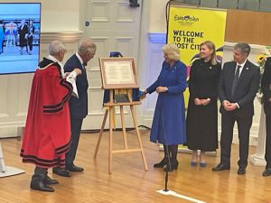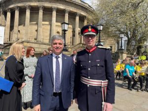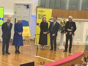 The Lord-Lieutenant was delighted to welcome His Majesty the King and Her Majesty the Queen Consort to Liverpool on 26th April 2023.  Their Majesties visited the M&S Bank Arena to view the arrangements for Eurovision, before moving onto the Central Library in William Brown Street to mark the twinning of the library with the M. S. Hrushevsky Scientific Library of Odesa.  The Ukrainian Ambassador to the UK, His Excellency Vadym Prystaiko also joined the visit and was able to speak with Ukrainian Nationals currently living in Liverpool and Sefton.