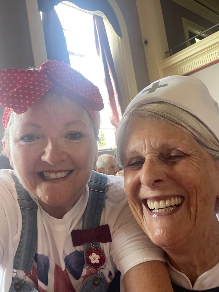 Sue said, “We enjoyed hearing some wonderful stories, looked at medals and photos of those who served, kindly shared by their family. We learnt some dance steps, including from a senior aged 94 years young, and served lots of tea and cake to wonderful people. What a lovely community event.”